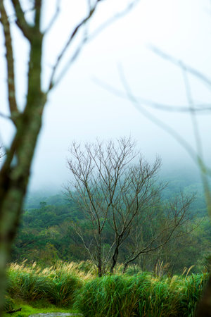 Yangming Mountain, a scenic spot in the suburbs of Taipei, with dead trees and reeds