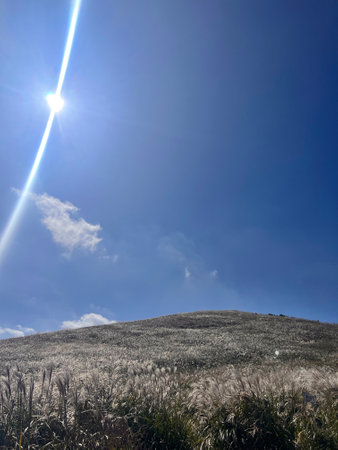 Chinese silvergrass under blue sky at Yangmingshan National Park, Taipei, Taiwan