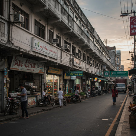 YANGON, MYANMAR - FEBRUARY 17, 2018: Explore the market streets of Chinatown, full of small shops, stalls, cafes, warehouses, tourist hotels and workshops, on February 17 in Yangon.