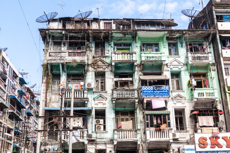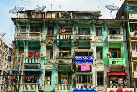 A block of old flats in the center of downtown Yangon in Myanmar