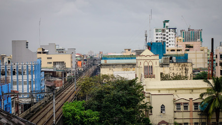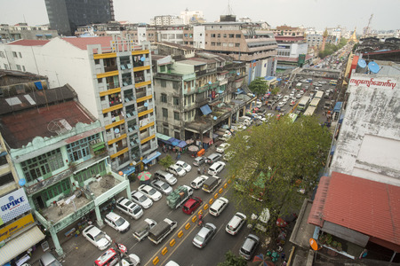 Yangon, Myanmar - Feb 26, 2016. Cityscape of Yangon, Myanmar. Yangon is Myanmar largest city and its most important commercial centre.