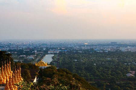 View over Mandalay with golden pagodas in Myanmar / Burma.