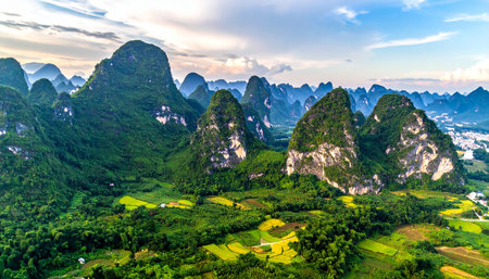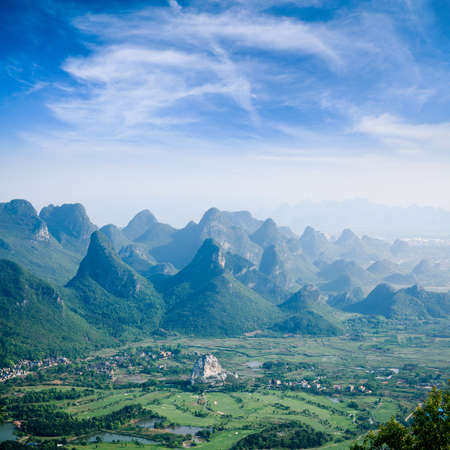 Panoramic view of karst mountains in Guilin, China