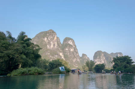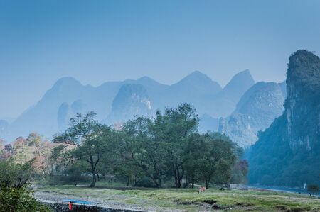 Beautiful Li river side Karst mountain landscape in Yangshuo Guilin, China
