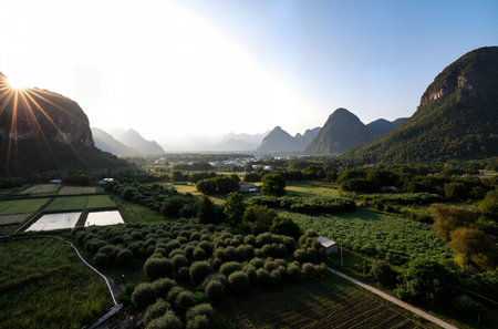 Yangshuo landscape, countryside and sunset scenery