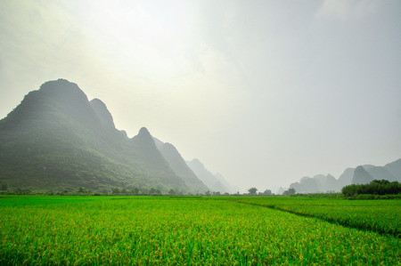 Karst mountains and rice fields in Yangshuo, Guilin, China