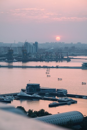 Sunrise at the Great Sea Wharf Construction Site in Beidaihe, Hebei, China