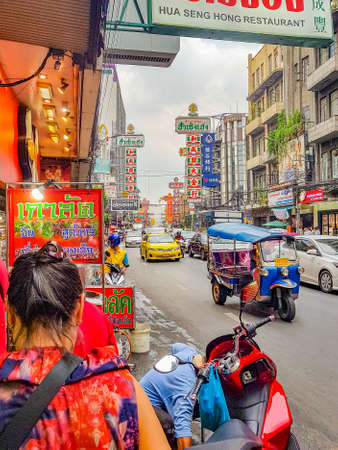 YAOWARAT, BANGKOK, THAILAND -12 JAN, 2022: Traffic In the morning of chinatown Thailand, Yaowarat is a major of gold trading market in Bangkok. on January 12, 2022 in Bangkok Thailand.