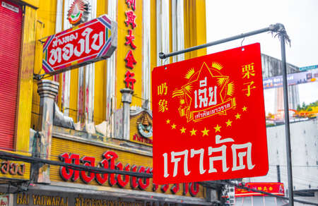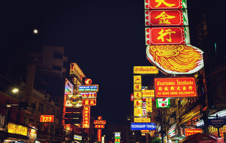 BANGKOK, THAILAND - FEBRUARY 03: Chinatown Bangkok shop and restaurant neon signs in Thai and Chinese in the evening on February 03, 2017 in Bangkok