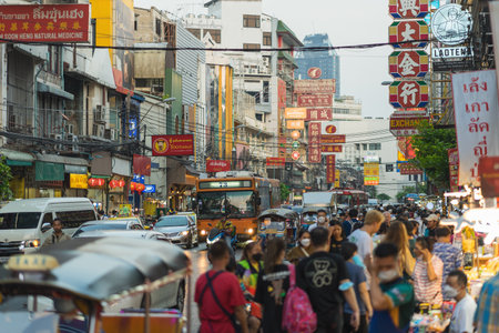BANGKOK, THAILAND - October 8, 2020 : urban lifestyle on Yaowarat Road,chinatown of Bangkok, Yaowarat road is the center of China town in Bangkok, Thailand.