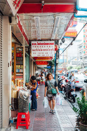 BANGKOK, THAILAND - APRIL 24: People walking on the market street in Bangkok Chinatown on April 24, 2016 in Bangkok, Thailand.