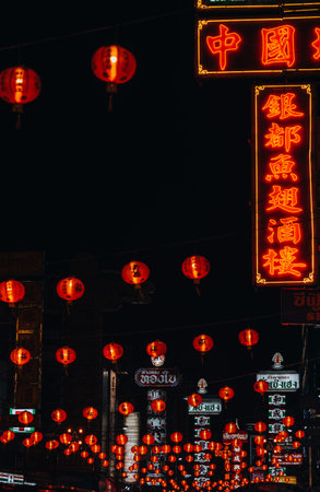 Chinese New Year Lunar in Chinatown Bangkok Thailand with Lanterns and Lights