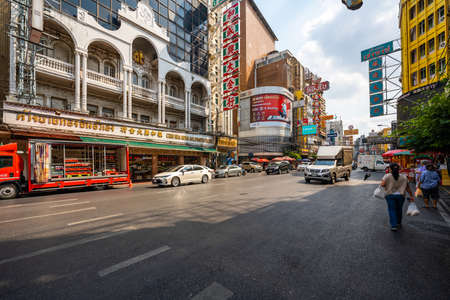 BANGKOK, THAILAND - MAY 12, 2019: The activity on Yaowarat Road of Chinatown, on May 12 in Bangkok, Thailand
