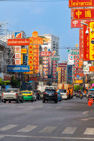 Thailand February 16 2019. traffic jam on Yaowarat Road, Bangkok's Chinatown, This place is famous tourist spot, Bangkok Metropolis Of Thailand.