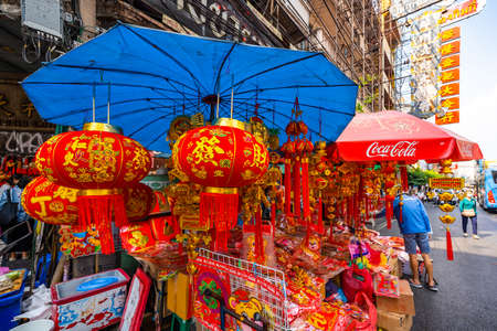 Bangkok, Thailand. January 25, 2020: Celebration of Chinese New Year in Chinatown of Bangkok. People enjoying the day.