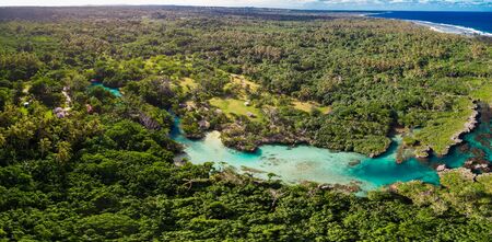 Drone view of The Blue Lagoon, Port Vila, Efate, Vanuatu - famous tourist destination