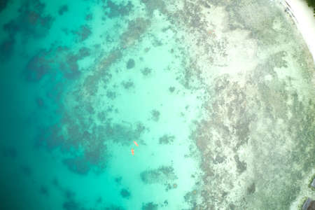 beautiful overhead view from a drone of the crystal clear waters and the barrier reef in the Caribbean Sea