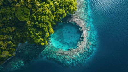 AI Generated. Aerial View of a Lush Tropical Island with a Turquoise Lagoon