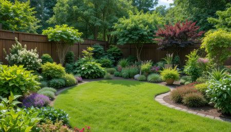 A spacious and well-manicured backyard. Generative AI