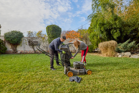 A middle-aged man and his wife work in the garden and do various maintenance activities.