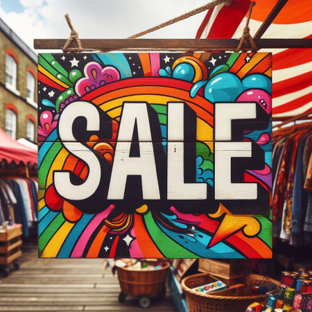 Eye-catching sale announcement in a shopfront with stylish attire.