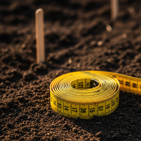 A close-up of a tape measure with precise measurements, laid out on a wooden workbench with soft lighting -