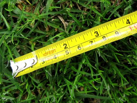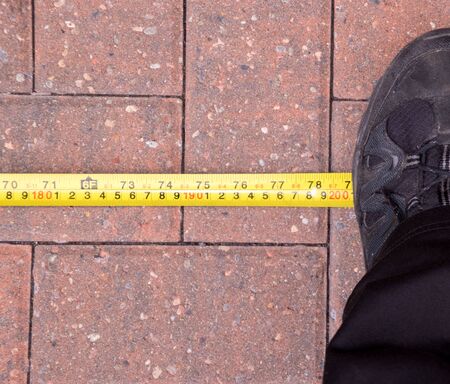 Yellow measuring tape in the ground. The concept of a healthy lifestyle.