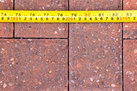 Tape measure road. Men's hands hold a measuring tape. Construction, engineering, repair concept