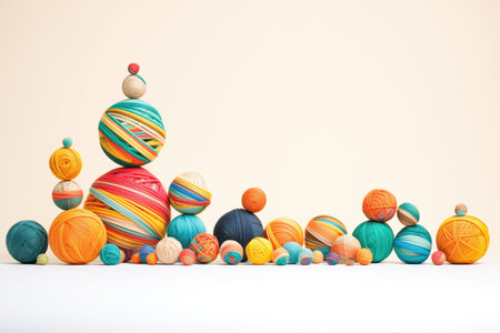 A stack of multi-colored yarn balls in the orange background with copy space on the left