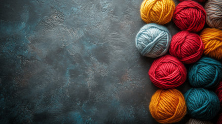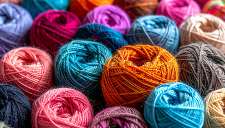 A vibrant collection of colorful yarn balls awaits a creative touch. Each skein holds the promise of a warm scarf, a cozy blanket, or a unique handmade creation, inspiring hobbies like knitting and crocheting.