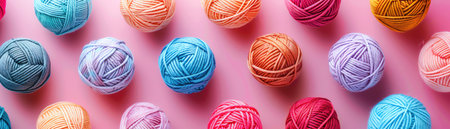 An assortment of colorful yarn balls neatly arranged on a pastel background, representing hobbies such as knitting and crochet