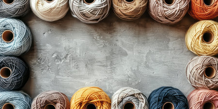 Colorful Yarn Background with Textured Wool Rolls in Bright, Soft Hues and Ample Negative Space