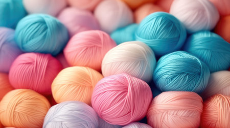 A close up of a bunch of yarn balls on top of each other, AI