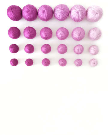 Yarn balls on a white background. View from above. Copy space.