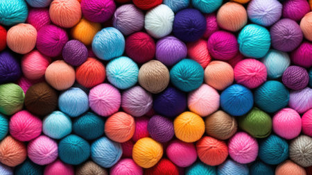 Background of colorful balls of wool threads for knitting, vibrant colors pattern. AI generative