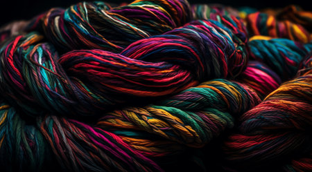 skeins of multi-colored ropes, close-up shot. Generative AI