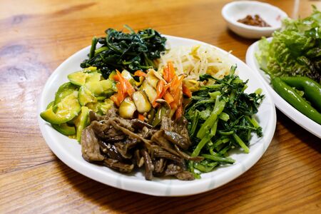 Korean traditional food Rice mixed with vegetables, wild greens
