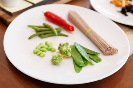Ingredients for a vegetarian dish on plate