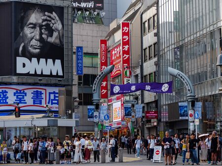 Shibuya, Japan - 23 9 19: People lined up ready to cross towards shibuya station.