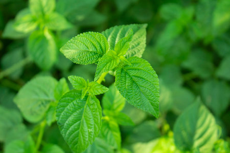 Close up of fresh Lantana camara leaves growing in the garden, stock photo