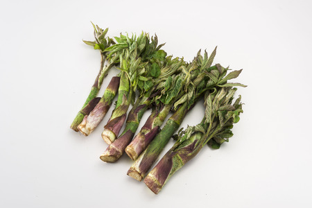Bamboo shoots in wooden plate on white background