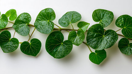 A captivating arrangement of fresh green leaves on a white background, emphasizing nature's elegance and textures. Perfect for wellness and eco-friendly themes.