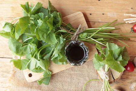 Justicia Gangetica Vegetable in a bamboo tray, Thai herb.