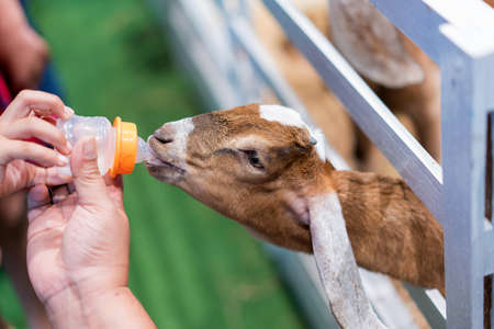 Rustic Style Close Up of Orphan Spring Lamb getting feed Milk