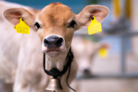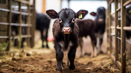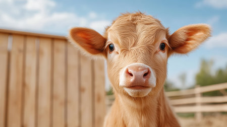 A Cute calf with big eyes on farm, showcasing sustainable livestock practices