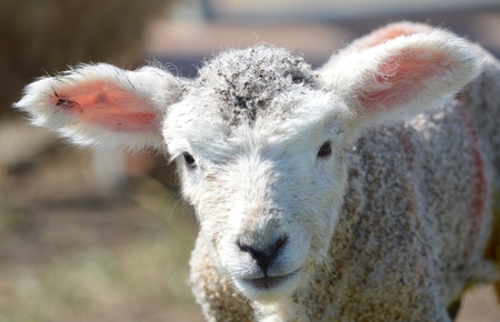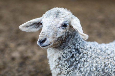 Lamb, young baby sheep, farm animal. Lamb portrait, animal looking to the camera, vertical capture.