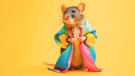 Toy white rat in the colorful strip background.
