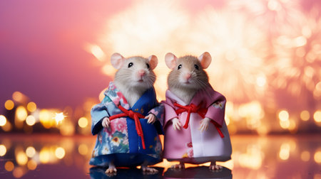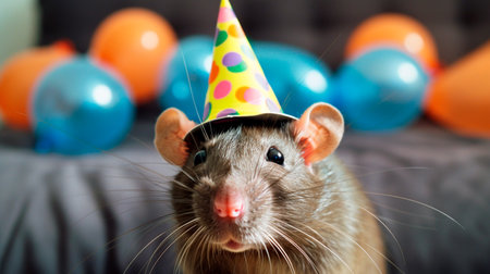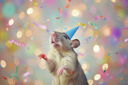 Rat celebrates Christmas and New Year. Mouse symbol
