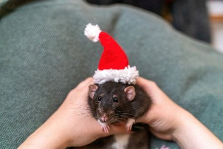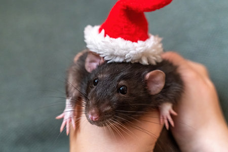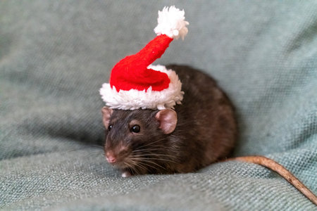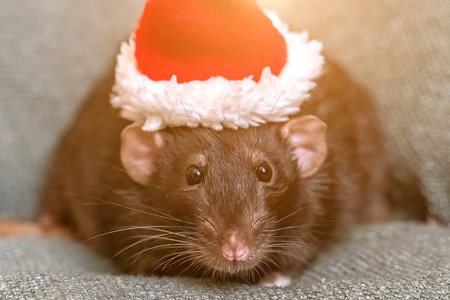 Rat Santa hat. Symbol of the Chinese New Year. Funny black rat D