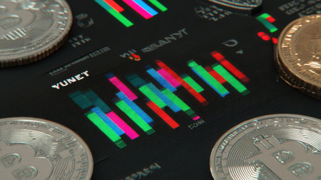 Bitcoin on a home computer chart and money and investment